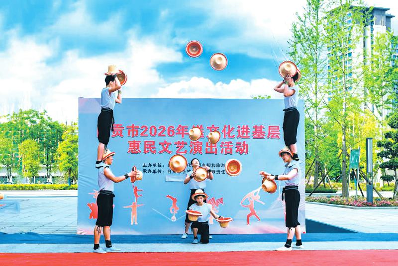 本报讯(自贡融媒记者 周姝)4月9日,市杂技团2026年送文化进基层惠民文艺演出火热开启。演职人员先后走进富顺县童寺镇、代寺镇,在田间地头、乡村院落搭起舞台,用一场场惊险奇绝、妙趣横生的杂技盛宴,为乡亲们送去文化的清风,让艺术在泥土间生根开花。
